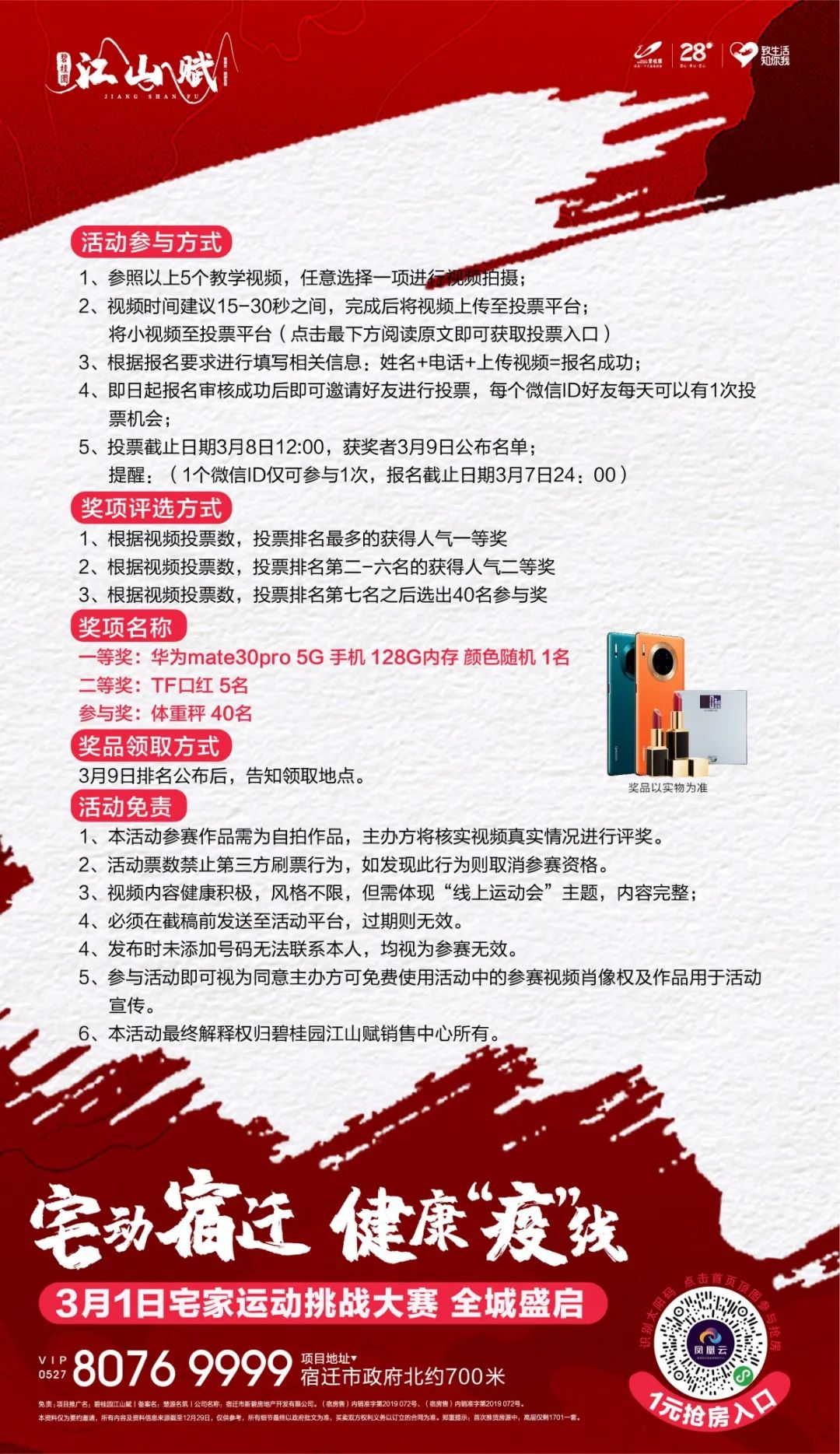 @宿迁人,宅家运动拍视频赢华为5G手机活动指南,全城动起来!