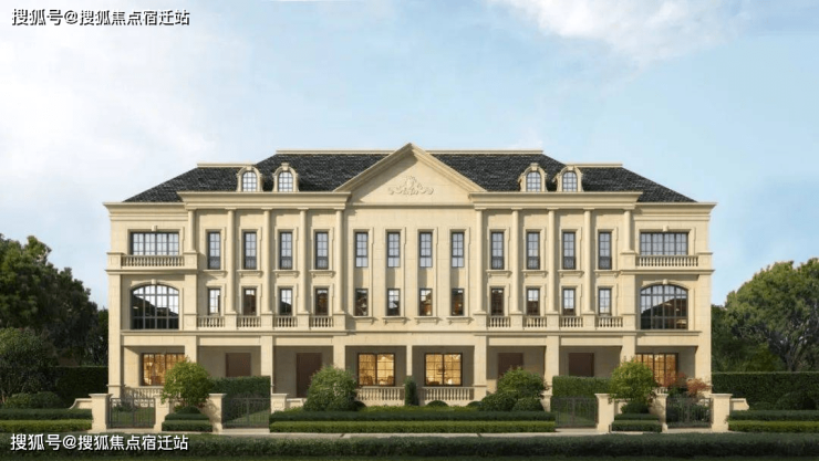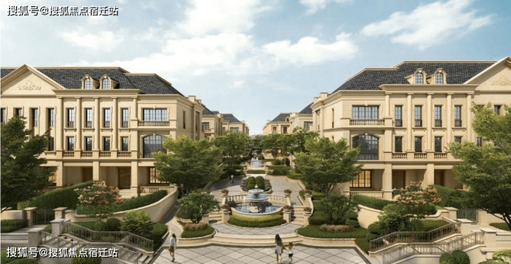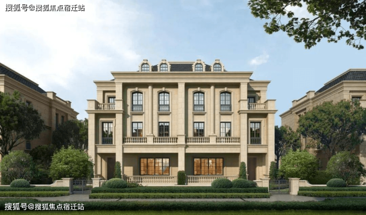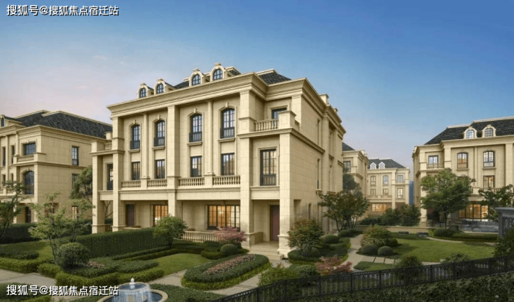 联排建筑的设计,融合了中国传统院落布局与法国枫丹白露宫的审美,外立面大面积采用全石材干挂,檐口等细节部位使用仿石。