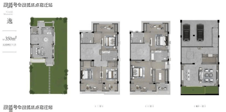 以建面约350㎡户型为例:首先是庭院够豪阔。每一扇门与窗的外面,都是自家的前庭、后院、中庭、侧院,花园270°环绕的感觉,不要太美妙。