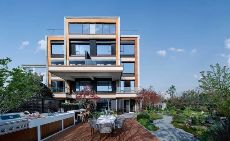 把第四代建筑理念融入叠拼,实现降板,把花园融入建筑,把森林搬进城市,首创空中花园独栋叠墅;