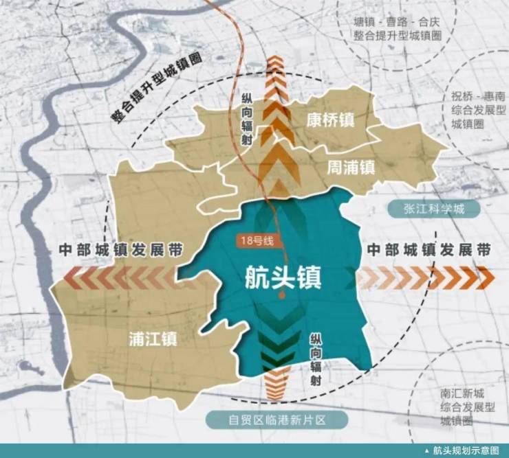 在上海2035总体规划中,要求“浦江-周浦-康桥-航头城镇圈”优化生态结构,加强城镇组团化发展,体现生态宜居的功能。在浦东新区总体规划的空间体系中,将“浦周康航”列为浦东新区两大整合提升型城镇圈之一。