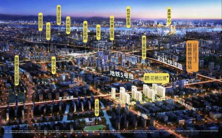 轨交:紧邻地铁5号线姑娘桥站(步行距离约800m)。5号线穿越7个城区,其中16个换乘站,无缝畅通全城,是杭城不折不扣的地铁“换乘之王”。