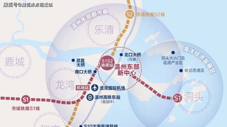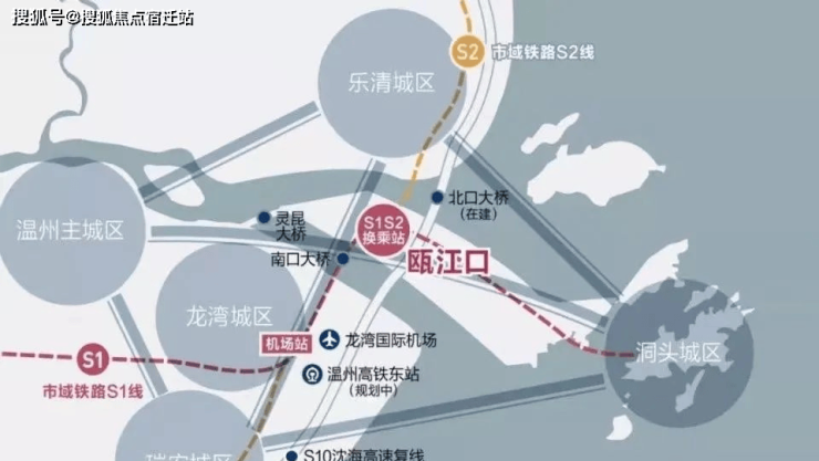 集S1线S2线、龙湾国际机场、规划中的高铁东站、南口大桥、北口大桥、状元岙深水港,海陆空交通一应俱全。