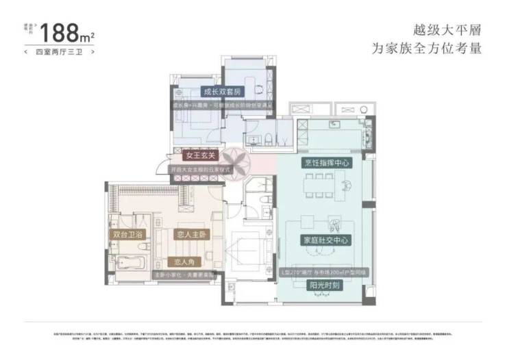 项目最大面积约188㎡,位于小区中间位置,居住舒适度及景观视野明显高于149户型,最大问题就是总价过高,板块价值支撑不足,超出片区主力户型范围。