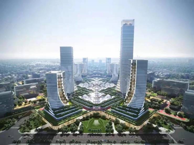 •荣耀之环(在建中):临港新片区跨境金融总部集聚、金融业务创新区的总部湾核心地标,直径达150米的巨构圆环,漂浮在临湖的4栋百米塔楼之上,其圆形结构象征着金融的繁荣和统一