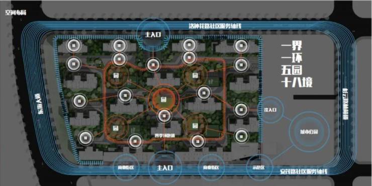 一界一环五园十八境景观法则,侧写9大生活场景。