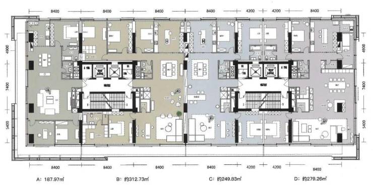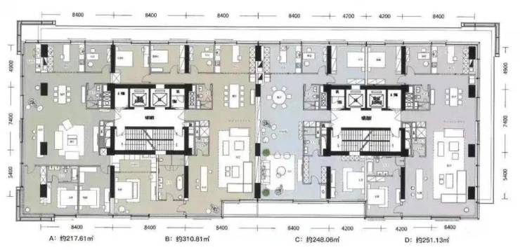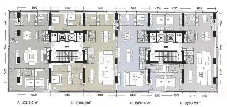• 面 积:200.96㎡-𝟐𝟓𝟎.𝟏𝟒㎡(交付三房两厅三卫)