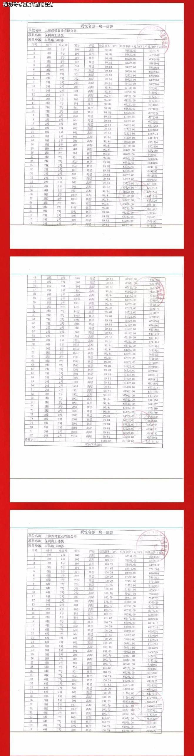 上海宝山【保利海上瑧悦】一房一价表: