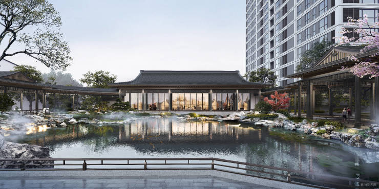汲取宋式建筑神韵和精髓,追求经典与现代的极致融合,展现中式奢华美学,赋新顶阶人居品位。