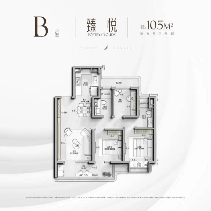 臻悦 | 建筑面积约105㎡ 三室两厅两卫