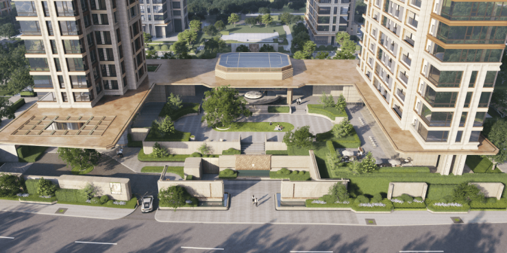 社区采用罕见的双重抬高设计,整体地块较东侧府村路抬升约2.4-2.8米,形成居高临下的仪仗感;住宅一楼实现全域4.5-6.6米架空,未来住宅首层相当于普通楼栋的三层高度,展现奢阔气度!
