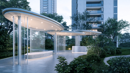 小区的规划可圈可点,比如入口处设置了星创理念的酒店式落客门厅,可直接开车或打车至大堂入户门廊下,大堂内设置了专属垂直电梯,业主及访客可通过专属垂直电梯直接进入地下车库,避免暴晒和淋雨。
