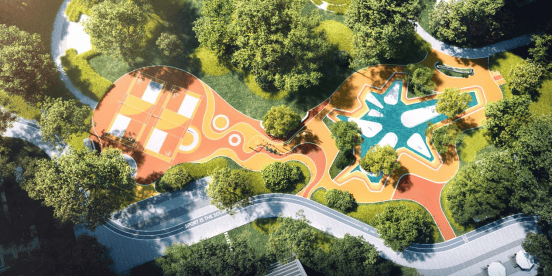 还有彩虹戏水池、轮滑场地、约500米的健康跑步道、约440㎡的儿童足球场……无论是孩子还是大人,都能找到适合自己的活动空间。