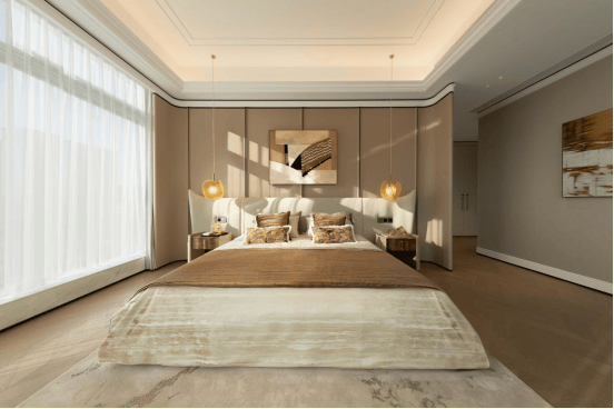 南向四套房设计,无界阳光,赋予居者非凡的生活礼遇;其中行政套房主卧,270°观景,私享卫浴、双台盆、浴缸等功能性空间,共同营造隐逸独立的生活空间,定制奢雅生活的仪式感。