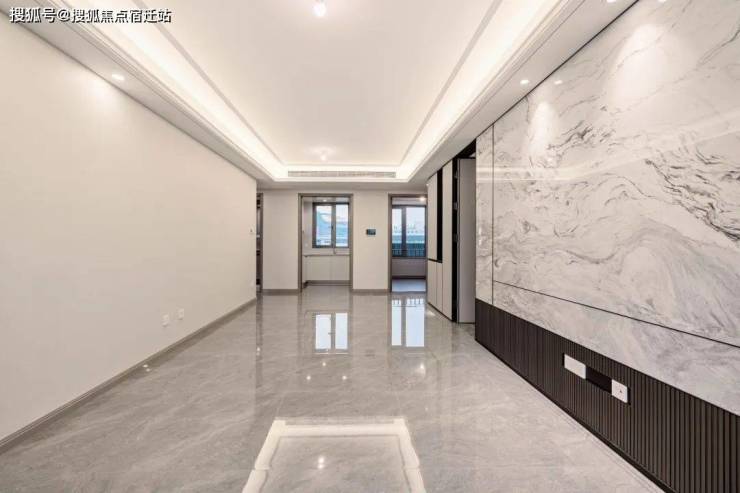 客厅双面背景墙:现在很多项目,连电视机背景墙都不做的情况下,翠栖府出人意料地做到“双背景墙”——电视机背景墙+沙发背景墙,开创“双背景墙”时代,其中电视机背景墙是大片岩板上墙,而沙发背景墙则是硬包的形式。提的一说的还有,主卧的背景墙,翠栖府这次也是“交付标准”。