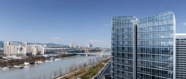 立面甄选铝板+石材+LOW-E铝合金中空玻璃组合,勾勒出非凡的艺术品格和视觉美感,光影交错间如华彩隽永,刷新南太湖地标天际线。