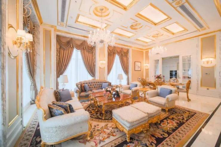因为新古典主义源自法国宫廷,应用场景层高通常在5米左右,才能为水晶大吊灯、雕花柱头等提供足够的“炫耀空间”。