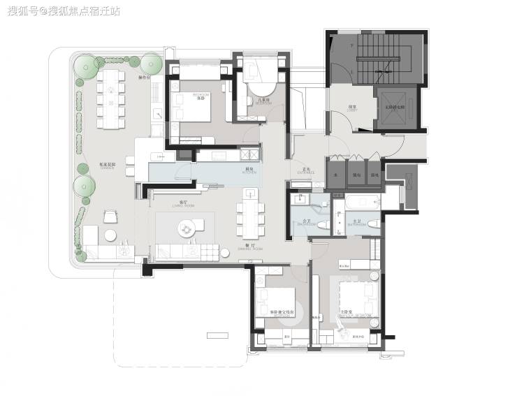 规划打造约30-50m²的多样化庭院,满足了一个人的狂欢到四个人的派对等一系列的休闲娱乐方式。