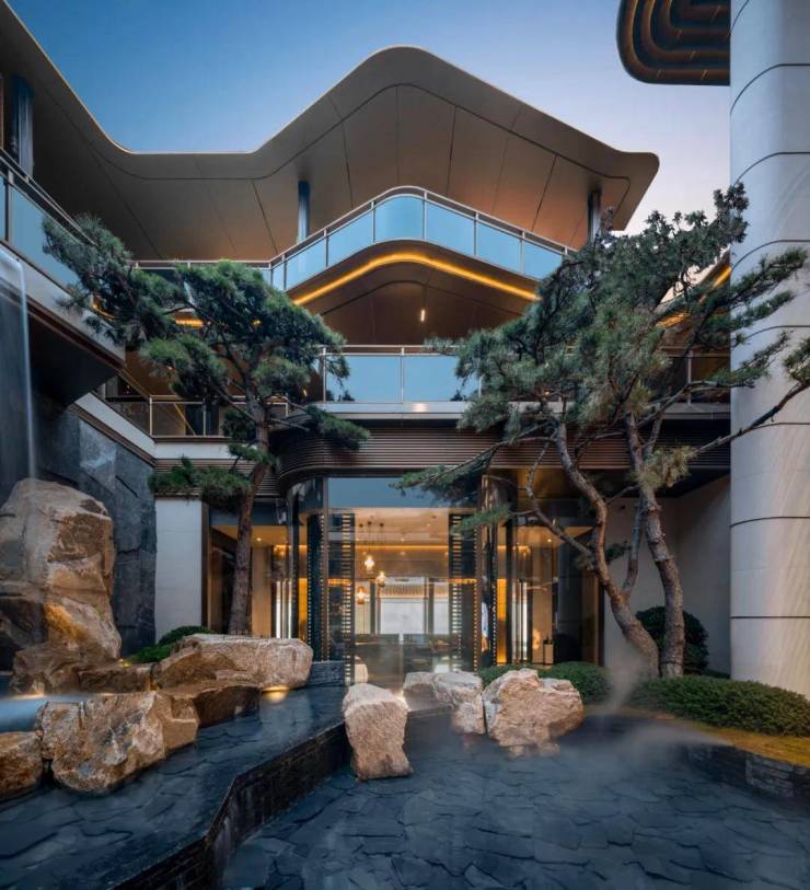 --- 三、 低密美学革命:宋代院居的当代转译 ▍五重归家礼序|时空折叠的东方意境 1. 一进·潮汐府门:流水景墙与错落置石,演绎现代版《溪山行旅图》; 2. 二进·立体山水:15米飞石叠瀑串联风雨连廊,空中悬挑平台重构三维园林; 3. 三进·禅意院落:石涧叠翠营造"结庐在人境"的静谧哲学; 4. 四进·四时坊巷:樱花/紫薇/枫叶/红梅主题巷道,步移景异; 5. 五进·定制宅邸:217-300㎡排屋合院,以空间丈量世家气度。 ▍隐贵会所|1300㎡下沉式社交艺术馆 - 恒温泳池、私教健身舱、雪茄吧构筑健康社交场; - 星空私宴厅、闺蜜茶室重塑圈层生活仪式感; - 越秀物业金钥匙服务,提供资产托管、定制宴请等隐形特权。