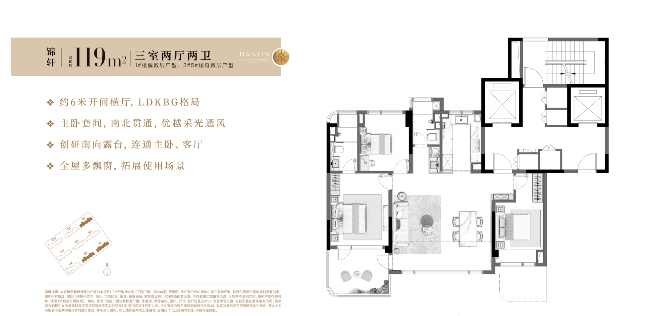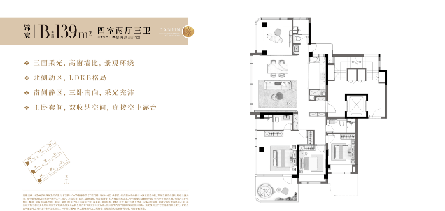建面约119㎡、129㎡、139㎡、188㎡空中花园住区,约94%-112%高空间使用率,LDKB一体化设计,重塑空间想象。