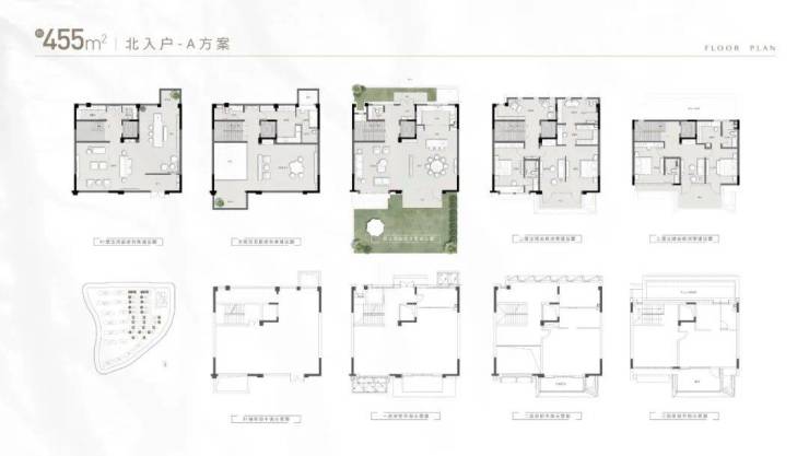 产品面积约:415㎡、455㎡、525㎡、580㎡、717㎡
