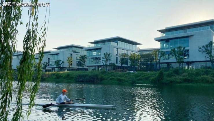 总部独栋集群,容积率低至1.0,三面环水,通达钱塘江,超8万方生态园林,78%绿化率,犹如置身于风景中办公。