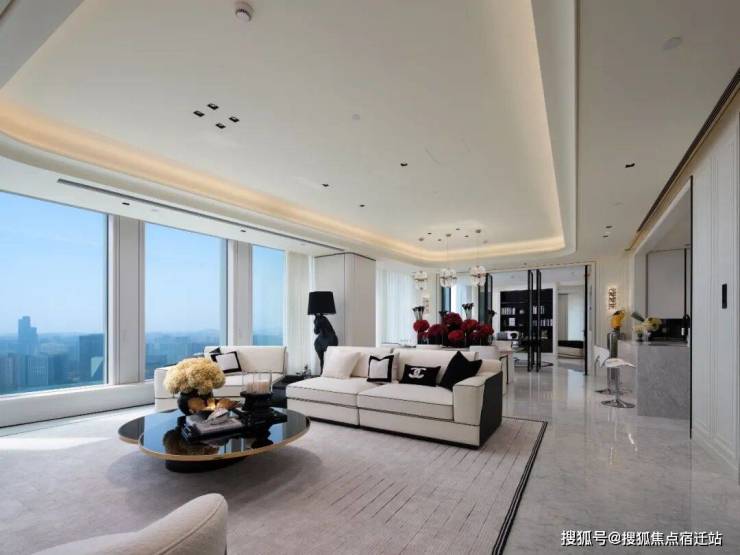 约230㎡样板房,约10米的巨幕落地窗将光与景大篇幅引入室内。双主卧的配置,给不同家庭成员同等尊贵的空间感。
