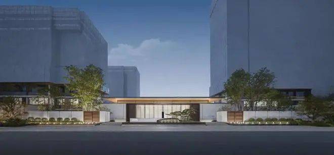 建筑门堂的比例恰到好处,呈现出诗意画境。1:5至1:6的高宽比,使建筑既稳重又灵动。入口两侧的景墙与水景相映成趣,勾勒出一条充满诗意的归家之路,体现了江南昆山的东方韵味。