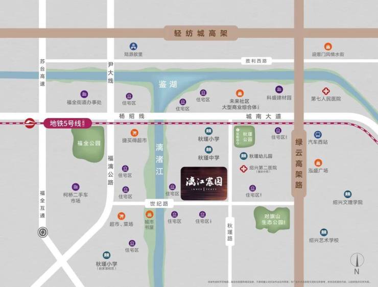 生态范本:项目依鉴湖源头之一的漓渚江而建,直线2km范围内更坐拥福全公园、秋瑾公园等自然景观配套。