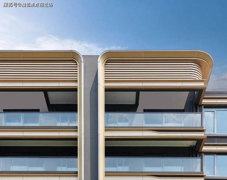 建筑立面上,打破杭州“无风格化”立面的惯用做法,在建筑顶部增加了“王冠”,立面以超流线的迷人线条,在香槟色的演绎下,成为业主归家抬眼那刻的温柔。