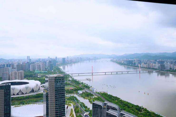 此前,他们从未在这个角度欣赏过奥体:大气磅礴的钱塘江就横陈脚下,没有遮挡。大落地窗一面对着“日月同辉”、市民中心和江河汇,另一面则近瞰大小莲花碗、大墨镜。