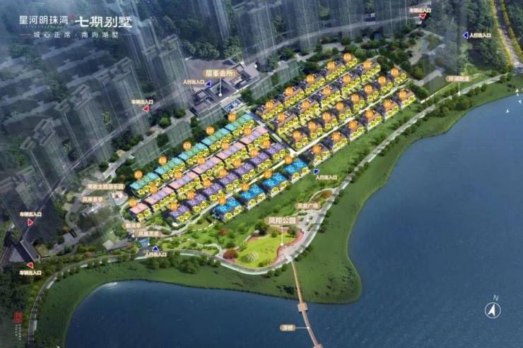 星河明珠湾七期占地约 12 万㎡,整个方位坐北朝南,南面寒妈湖,俯瞰千亩湖光,以“城市湖山第一大盘”之姿,打造粤东罕见的低密墅居群落,融入潮汕人的中式情结,定制一座专属于潮汕人的尊贵府苑,漫步在园区内,雍容华贵,每一处精工雕琢都是献给潮汕望族的归家之礼。