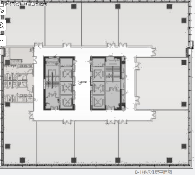 ❹:标准层办公进深都在12 米以上,保证办公的有效使用