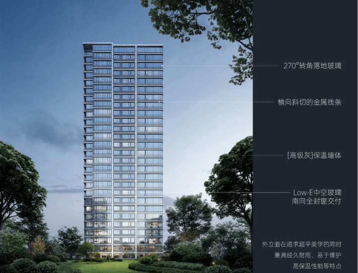 在产品打造上,绿城梅溪半山展现出独特的设计理念和精湛工艺。建筑采用 “现代主义极简美学” 设计,以 Super Flat 超平美学立面重塑人居美学,线条简洁流畅,展现出时尚大气的建筑风格。
