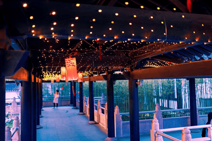 出门即是樱花公园,樱花公园占地约 850 亩,分为樱花林、樱花岛、樱花广场等几部分,“樱花八景”将景区点缀得如诗如画。樱花广场的亭台楼阁,建筑风格皆为唐风,与烂漫樱花十分匹配,再现盛唐文化景象。