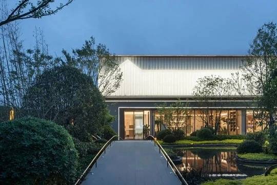 新中式风格:建筑采用灰、白、棕三种主色调,搭配大面积玻璃和现代材质,既保留了传统中式建筑的古朴素雅,又融入了现代简约的设计语言,展现出独特的建筑美感。