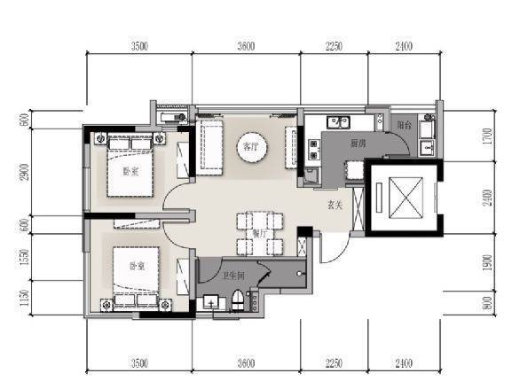 A户型 72方 2室2厅1卫