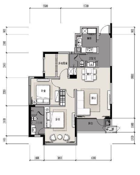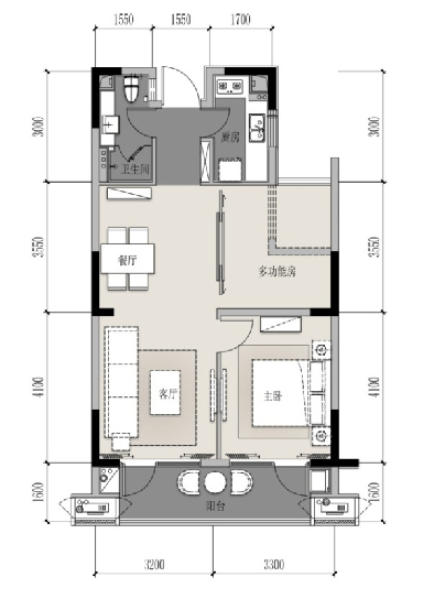 B户型 82方 2室2厅1卫