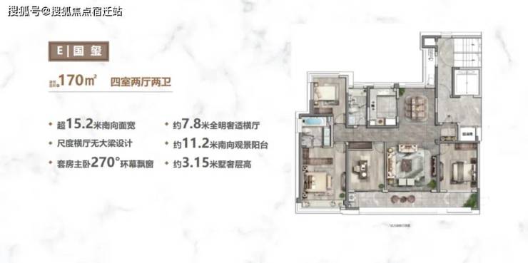 品质进阶增配举措2:中央会客厅,坐拥无遮挡观景视野,休憩、会客全能。尽展楼王风范;