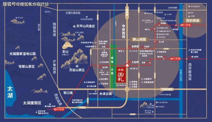 🚈交通——轨交5号线(大治桥站)、1号线(金枫路站)、苏福快速路、中环西线快速路等