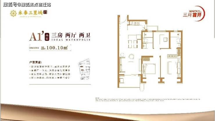 具体细节方面,项目目前只有一个建面约100㎡三房的样板间,带软装后面宽约3.3米,吊顶后层高约2.73米。