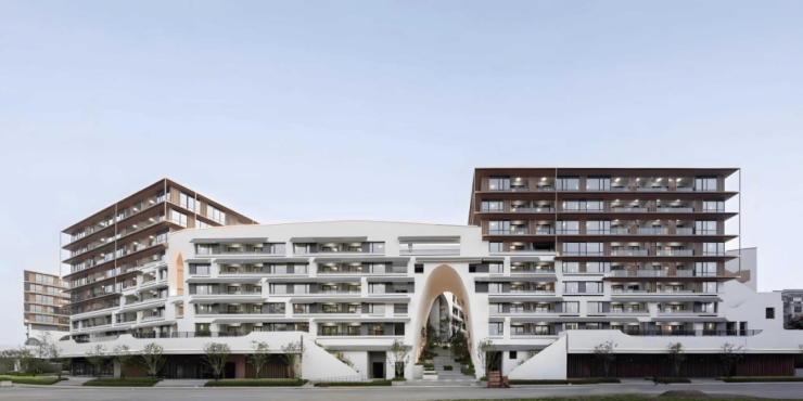 整体的围院形式打破了 “好住宅必须南北朝向” 的陈规认知,避免销售、分配时的 “矛盾”,更重要的是开放式全混居系统保证了人才公寓与其他住户平等享有园区便利以及江景,保障了年轻人的生活尊严,为社区的持续健康发展提供有力支持。