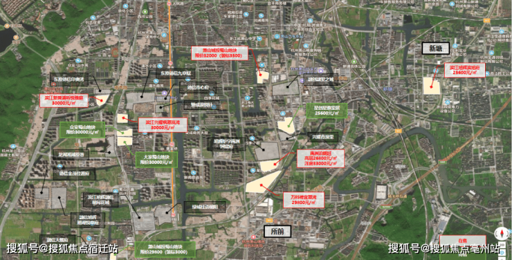 或许是老天的眷顾,南部新城板块内尚存一个限价仍为25600元/㎡的全新项目,直线距离限价32000元/㎡的新地块仅约800米。▲地块位置示意图