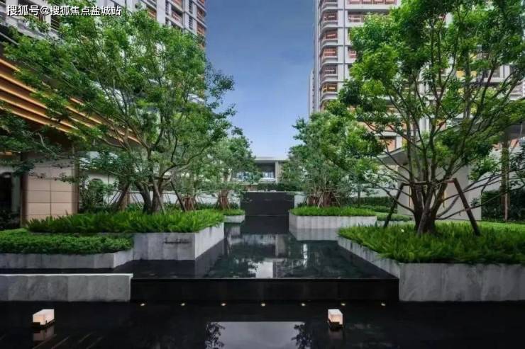 度假会客泳池、健身会所和静谧水院围合的区域形成一处园林叠水景观,保利以摄影取景框的产品心法,让园林每一处驻足的视线都与众不同,随景入画。