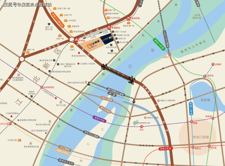 【区位】项目位于大桥第一站,是桥北人流车流最繁华的地段,无缝衔接江南江北
