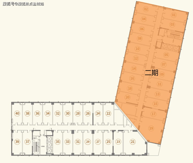 楼层平面图:单层20户,南北各10户