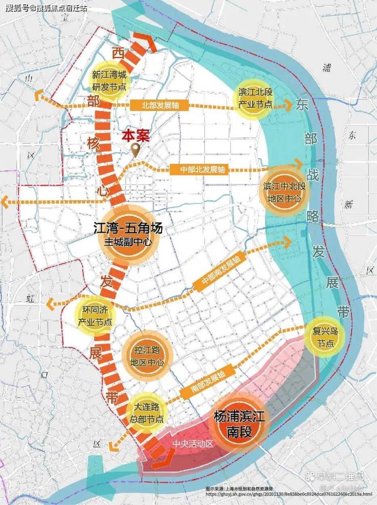 项目占位中部北发展轴与西部核心发展带战略交汇处,紧邻上海科创源,通过五角场和新江湾两大核心区域辐射,汇聚上海高光资源,以未来世界生活秀场,坐拥板块发展红利