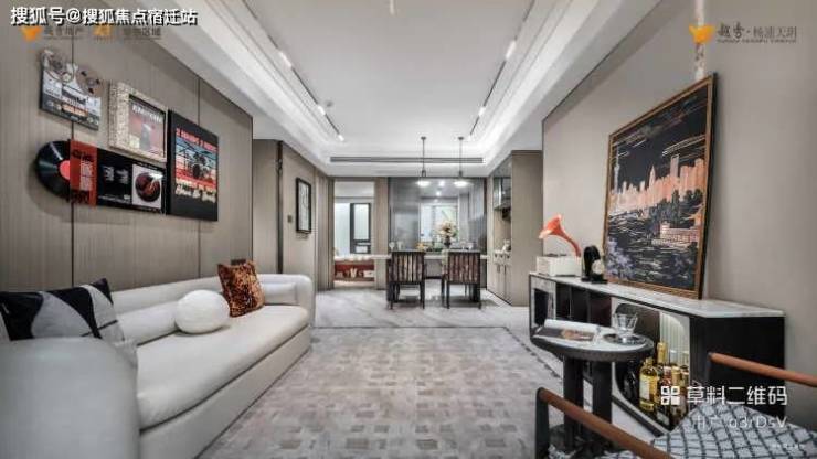 全能玄关·全能收纳玄关选用严选产地巴西的雪山飞狐奢石,对标外滩华尔道夫酒店宽境客厅·敞阔客厅应用健康系统,极致工艺(圆弧形吊顶搭配无主灯设计、定制地砖减少拼缝)