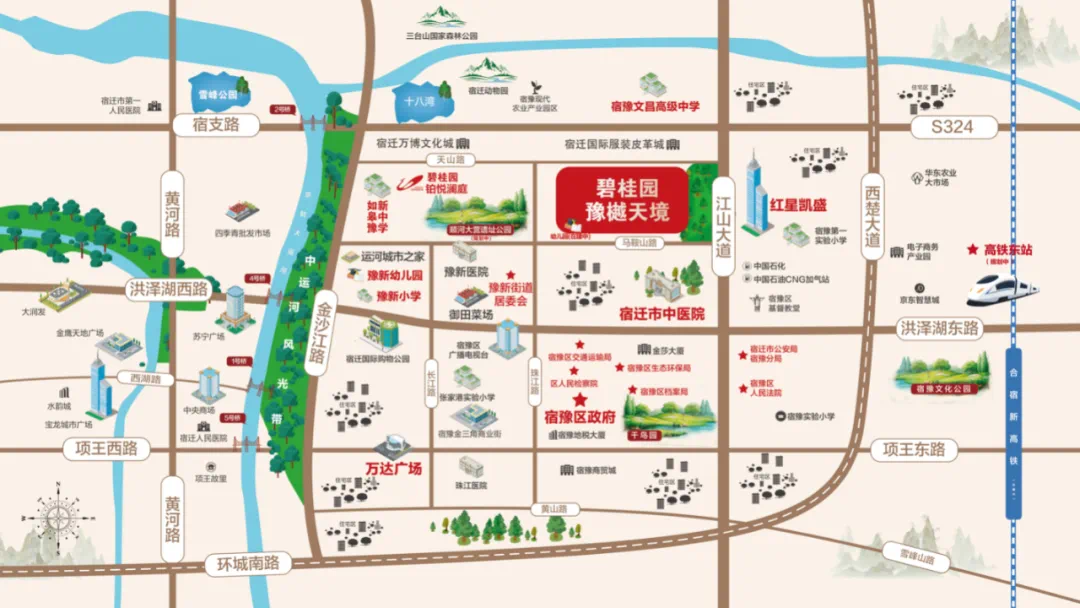 碧桂园·九州府位居宿迁正芯,坐拥得天独厚的区位优势,荟萃着城市所应具备的繁华元素——商业、文化、政治等,都将在这里较大化的呈现,是全城优渥资源大成之地!