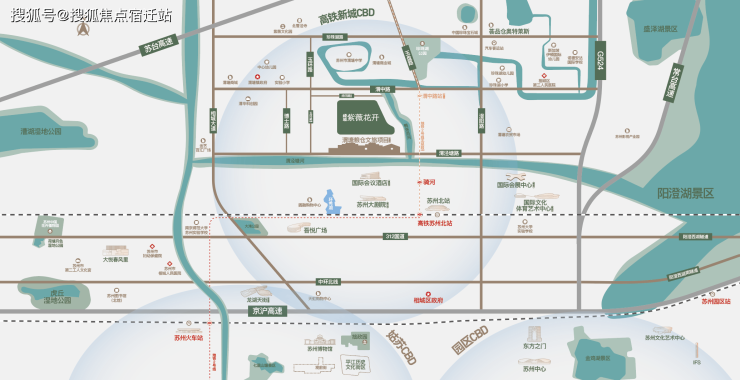 “双十字”超级枢纽苏州北站——从项目出发,搭乘地铁2号线延伸段(在建),4站即达苏州北站。